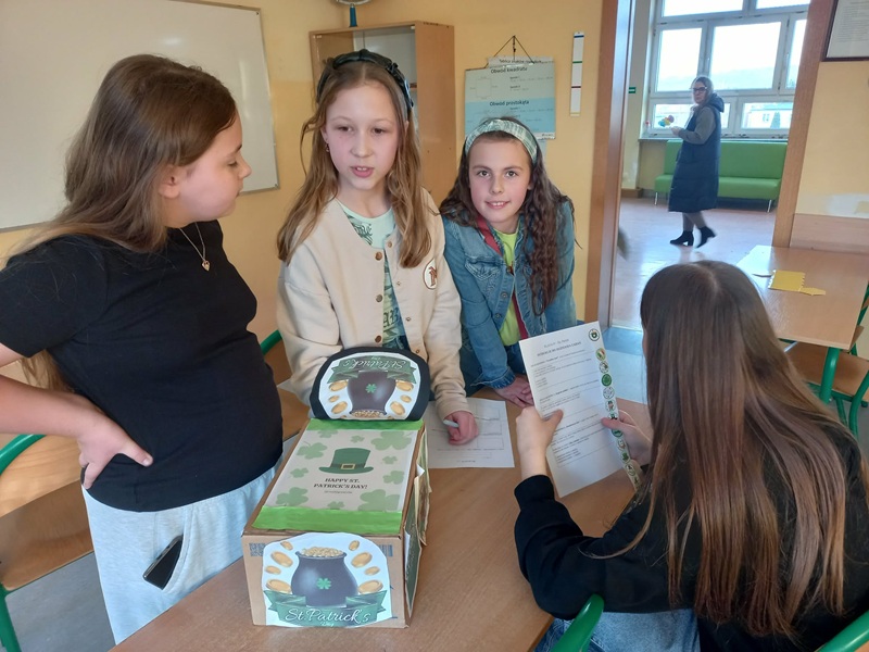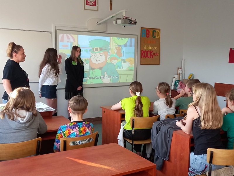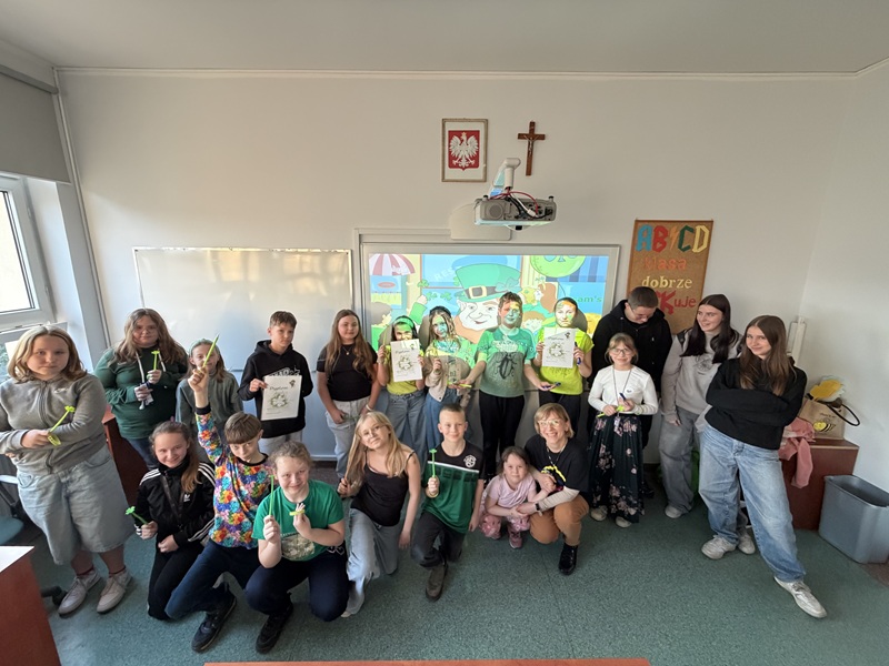 11 marca 2026 r. w naszej szkole odbył się konkurs z okazji Dnia Świętego Patryka. Na początku uczennice z klasy 8e opowiedziały o losach św. Patryka, patrona Irlandii. Następnie uczniowie klas czwartych wzięli udział w czterech ciekawych konkurencjach: quizie wiedzy, Poszukiwaczach złota, Magicznym pudełku oraz Rzucie szczęścia. Uczestnicy wykazali się dużą wiedzą, sprytem i świetną współpracą w drużynach. Podczas rywalizacji nie brakowało emocji, śmiechu i dobrej zabawy.