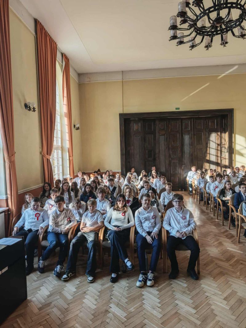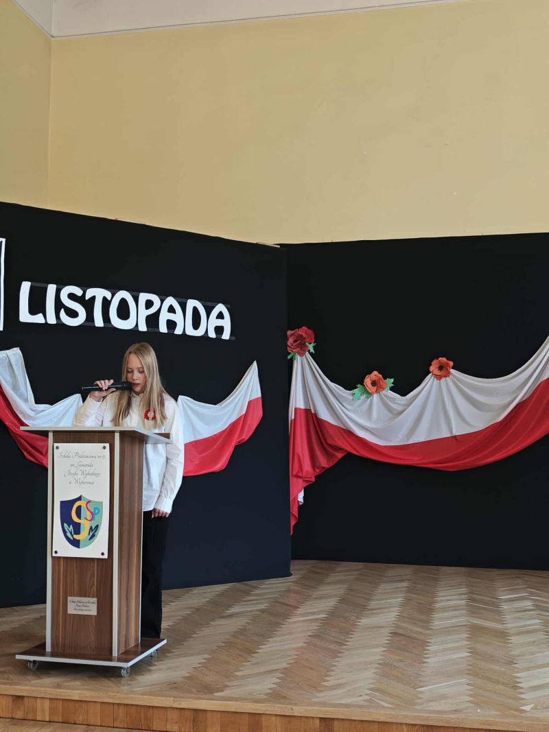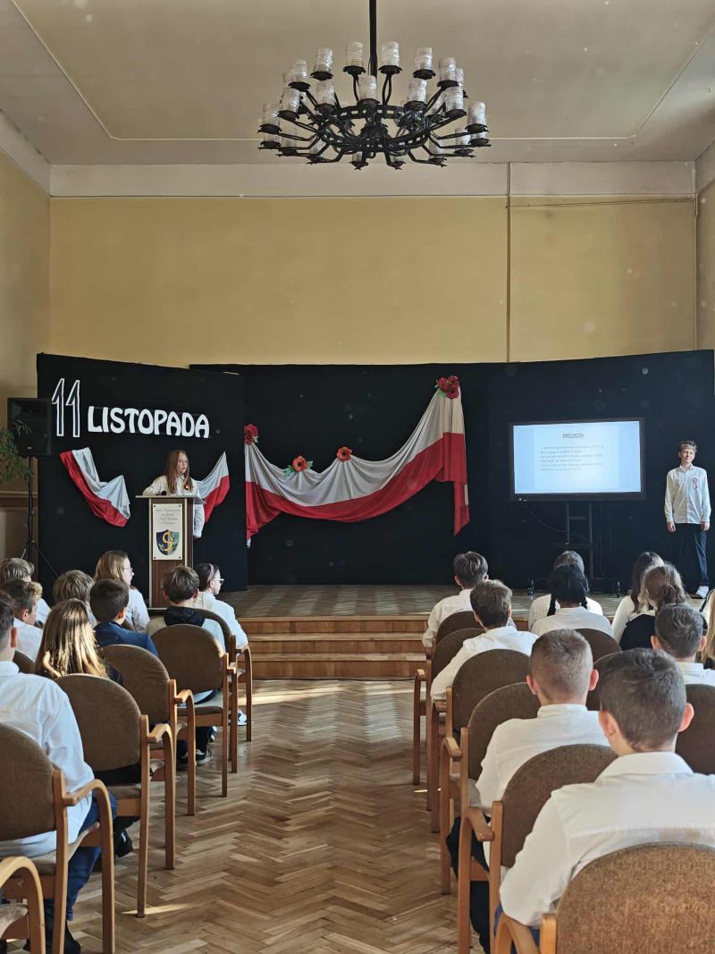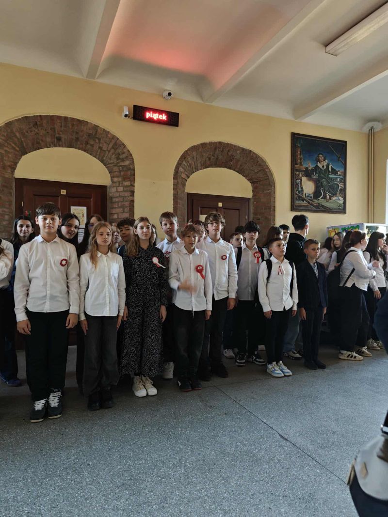 Z okazji zbliżającego się Narodowego Święta Niepodległości dnia 7 listopada 2025 r. uczniowie naszej szkoły w sposób szczególny upamiętnili to ważne wydarzenie, jakim było odzyskanie niepodległości przez Polskę 11 listopada 1918r. Charakter tego wyjątkowego dnia podkreślał galowy strój oraz biało – czerwone kotyliony noszone przez całą społeczność naszej szkoły.