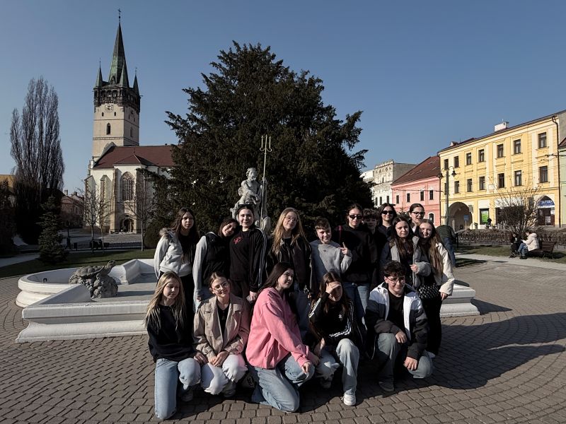Uczniowie uczestniczyli także w warsztatach upcyklingu i tkactwa, poznając ideę kreatywnego wykorzystywania materiałów oraz znaczenie zrównoważonego rozwoju. Nie zabrakło również zwiedzania regionu – młodzież odkrywała Svidník oraz historyczne centrum Preszowa.