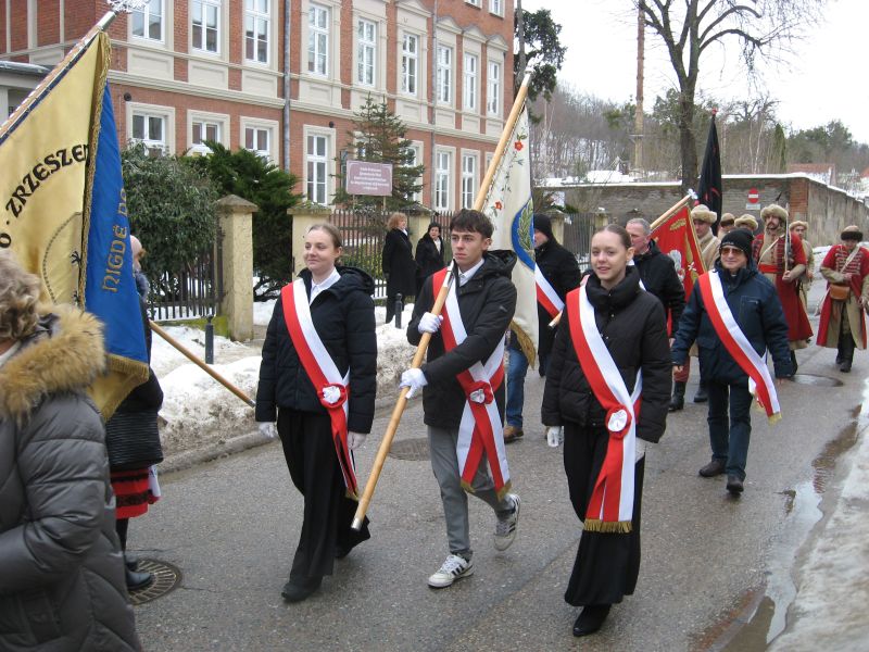Dnia 22 lutego 2026 r. poczet sztandarowy w składzie: Klaudia Plichta, Zuzanna Sokołowska oraz Radosław Semmerling z klasy 8e reprezentował naszą szkołę w uroczystych obchodach 369. rocznicy śmierci Jakuba Wejhera – fundatora i założyciela miasta Wejherowa.