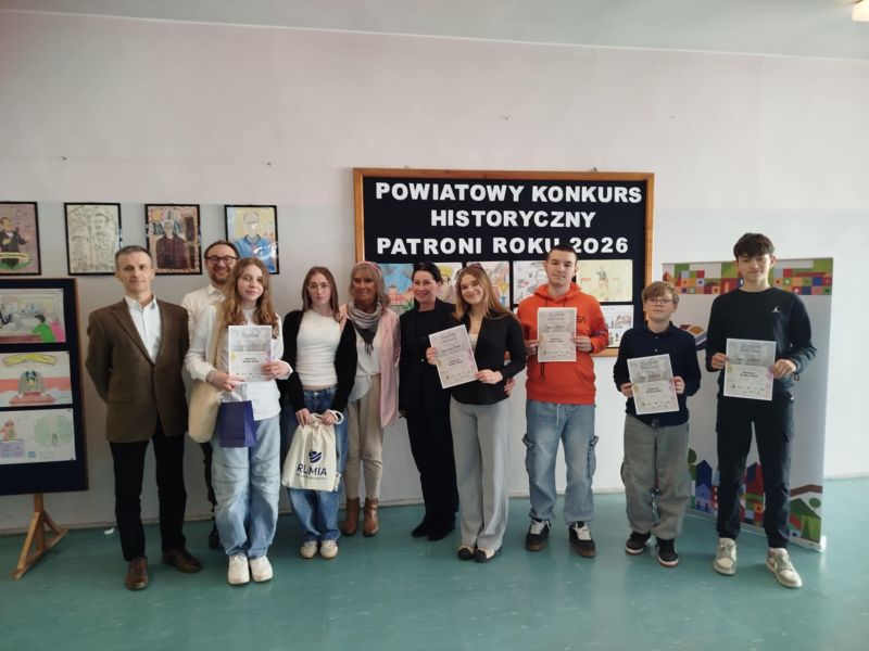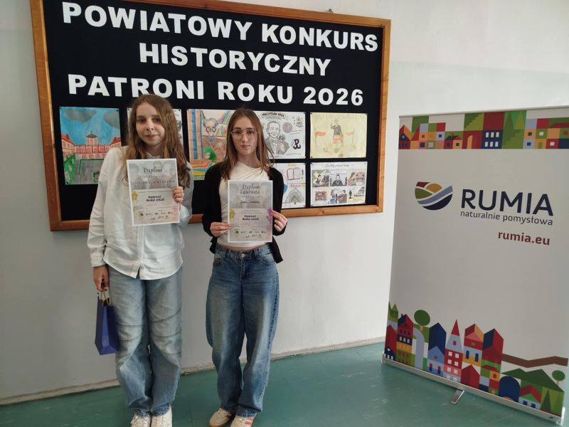 27 marca 2026 r. uczennice naszej szkoły – Joanna Wasielka (kl. VIIa) oraz Julia Grabda (kl. VIIIe) – wzięły udział w Powiatowym Konkursie Historycznym „Patroni Roku 2026”, organizowanym przez Zespół Szkół Ogólnokształcących w Rumi.