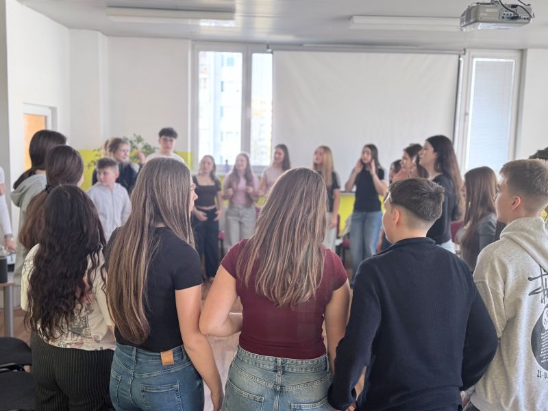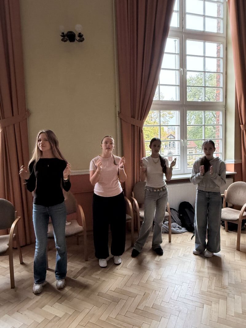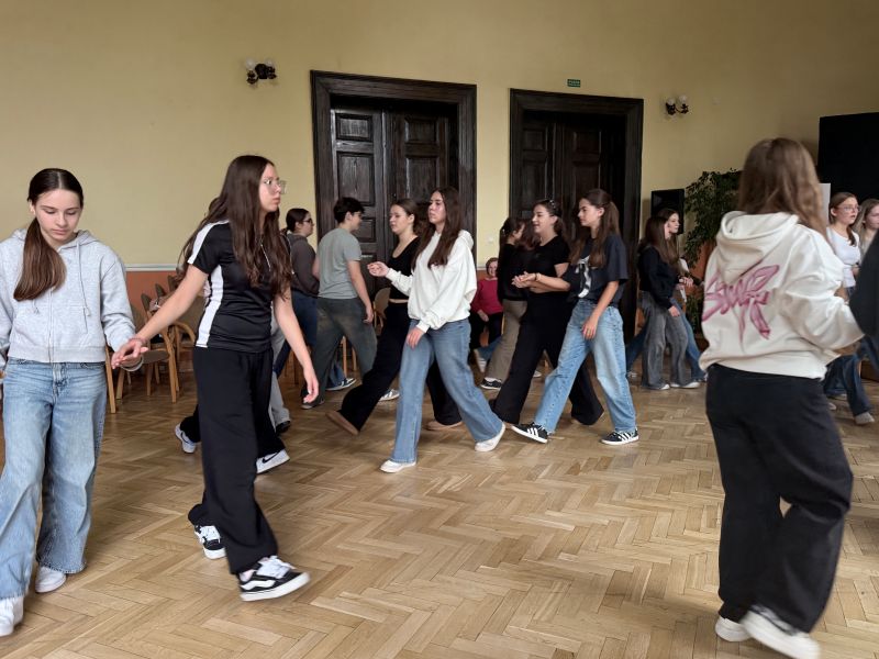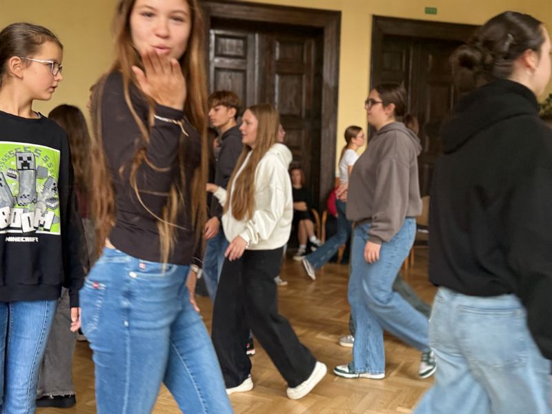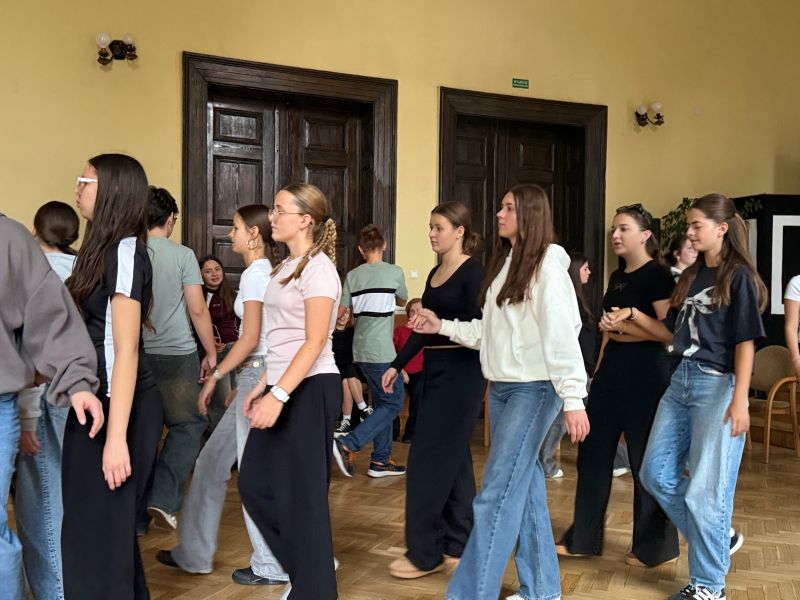 W środę 22 października uczestnicy projektu wzięli udział w warsztatach chóralnych, podczas których doskonalili swoje umiejętności wokalne, a także uczyli się elementów polskiego tańca narodowego – poloneza. Wspólne śpiewanie i taniec sprzyjały integracji, współpracy i budowaniu relacji między młodzieżą z Polski i Słowacji.