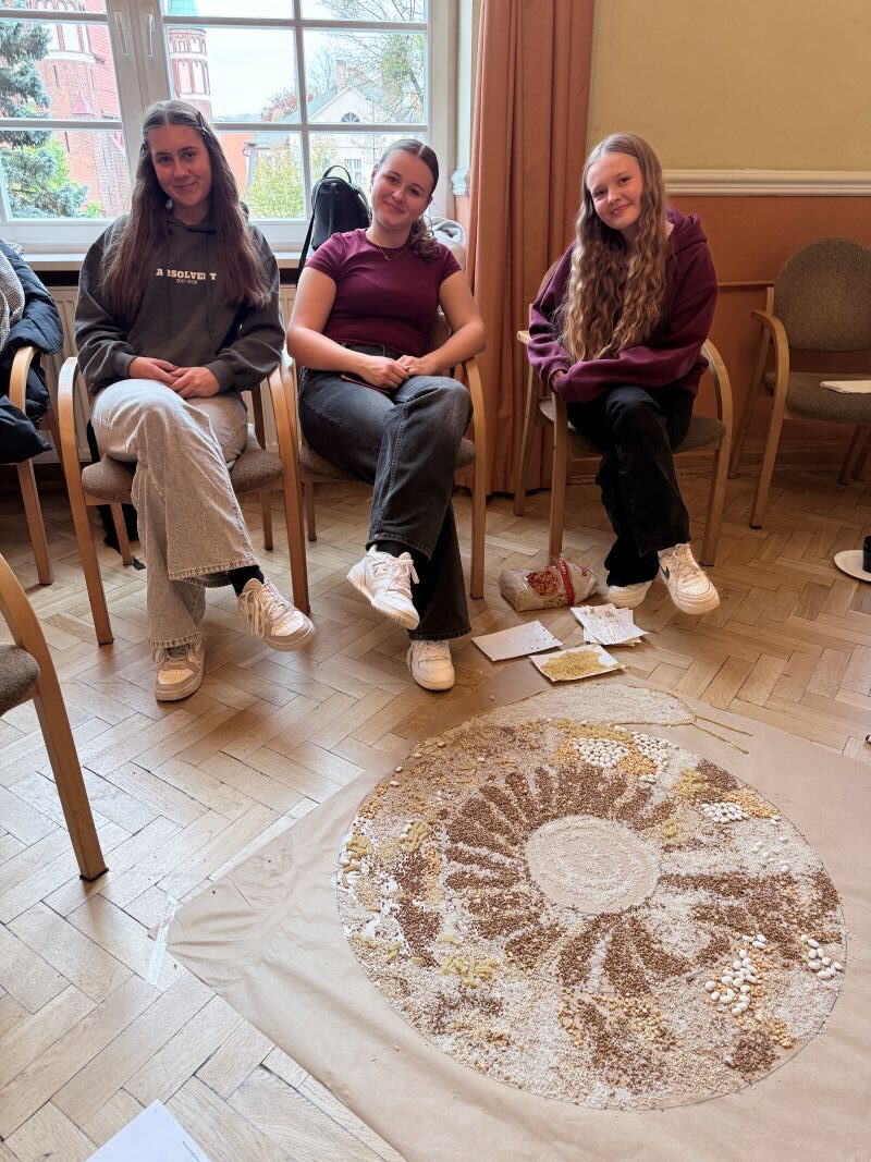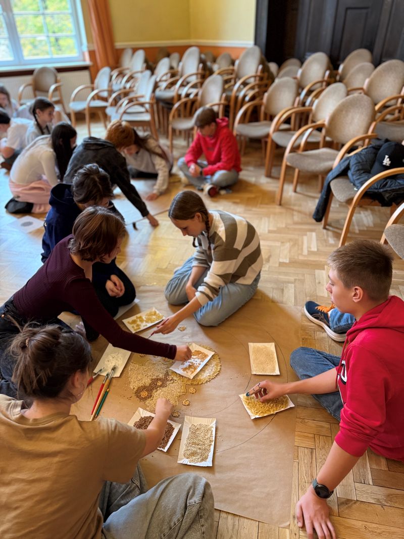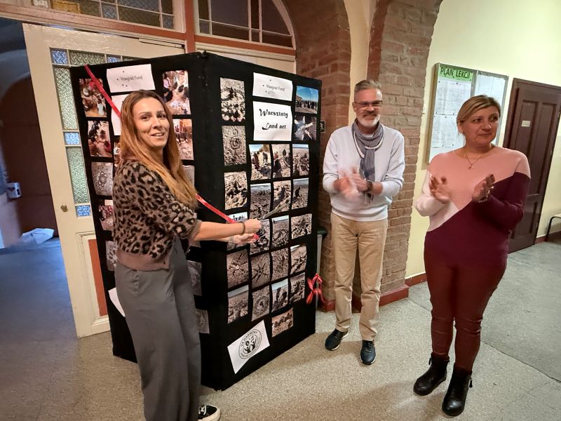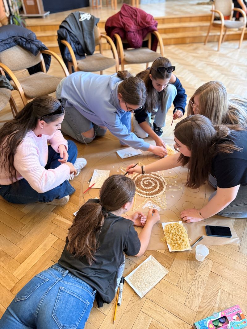 Uczniowie z Polski i Słowacji wzięli udział w warsztatach sensoplastyki, podczas których tworzyli kolorowe kompozycje z naturalnych materiałów – piasku, mąki, liści i przypraw. Powstałe prace, w tym wspólna mandala symbolizująca harmonię i współpracę, stały się nie tylko formą ekspresji, ale też okazją do rozmowy o tradycji i naturze w sztuce.