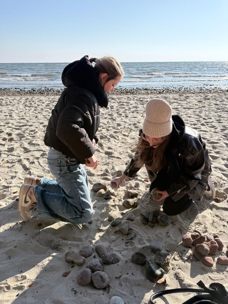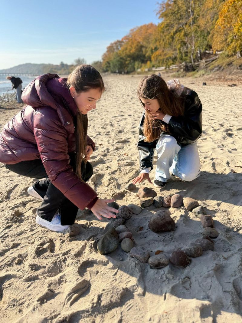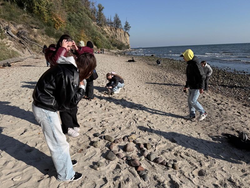 We wtorek 21 października polscy i słowaccy uczniowie wzięli udział w wyjątkowych warsztatach Land Art na plaży w Gdyni Orłowie. Wykorzystując naturalne materiały – piasek, kamienie, muszle, drewno czy liście – tworzyli wspólne instalacje inspirowane przyrodą, współpracą i harmonią między człowiekiem a środowiskiem. Działanie to doskonale wpisało się w ideę projektu, który łączy sztukę, muzykę i troskę o naturę.