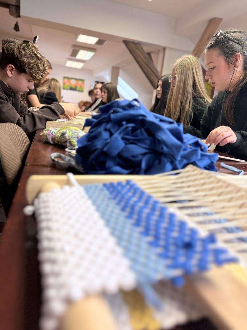 Kolejnym punktem programu były warsztaty ekologiczne w Podduklianskim Ośrodku Kultury w Svidníku, poświęcone idei upcyklingu. Uczniowie uczyli się podstaw tkactwa, wykorzystując skrawki materiałów, z których tworzyli niewielkie tekstylne prace. Zajęcia były okazją do rozmowy o zrównoważonym rozwoju i kreatywnym ponownym wykorzystaniu materiałów.