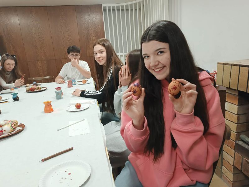 Po południu uczestnicy odwiedzili Słowackie Muzeum Narodowe – Muzeum Kultury Ukraińskiej w Svidníku. Tam wzięli udział w warsztatach poświęconych tradycyjnemu zdobieniu pisanek. Pod okiem ekspertów poznawali znaczenie symboli i wzorów, a następnie samodzielnie dekorowali jajka, wykorzystując tradycyjne techniki.