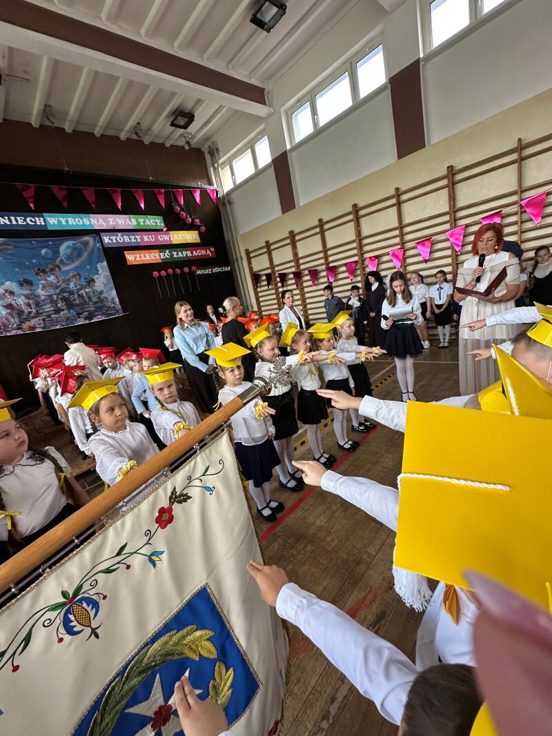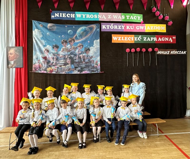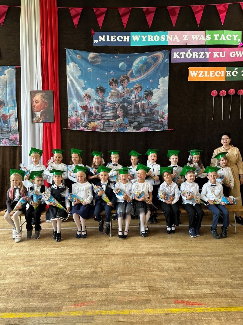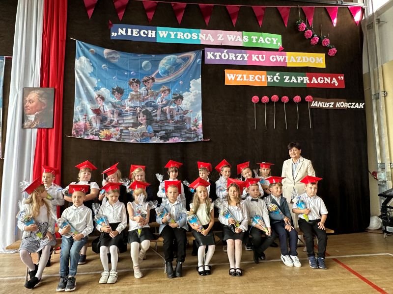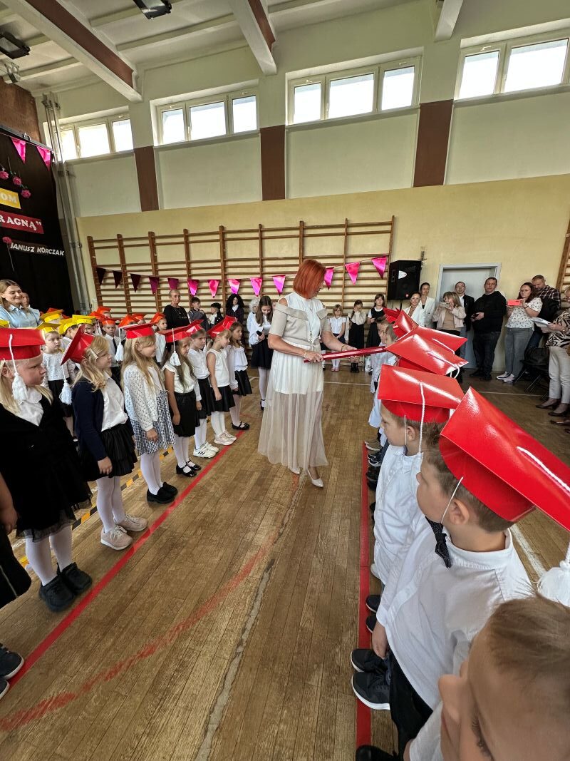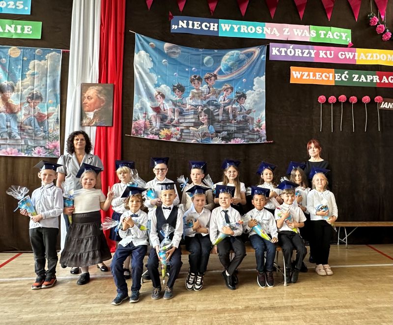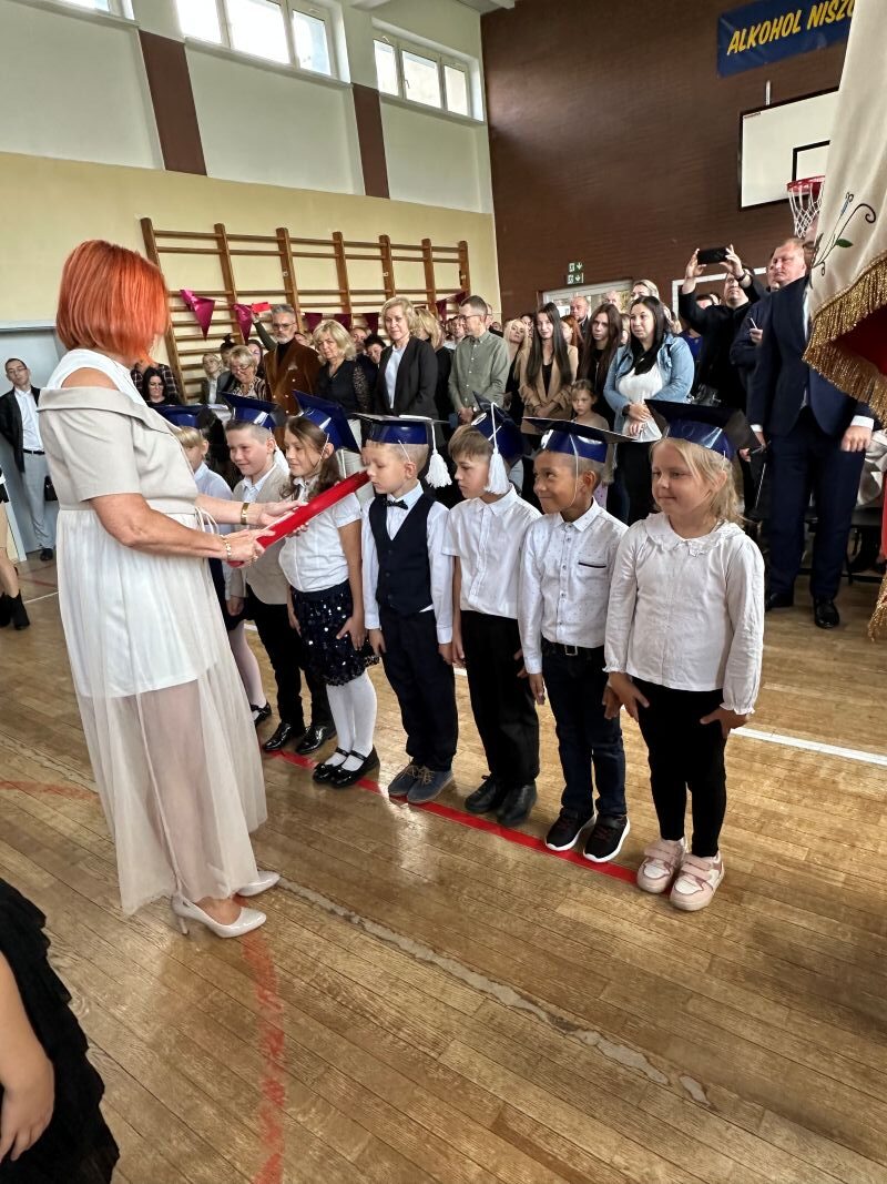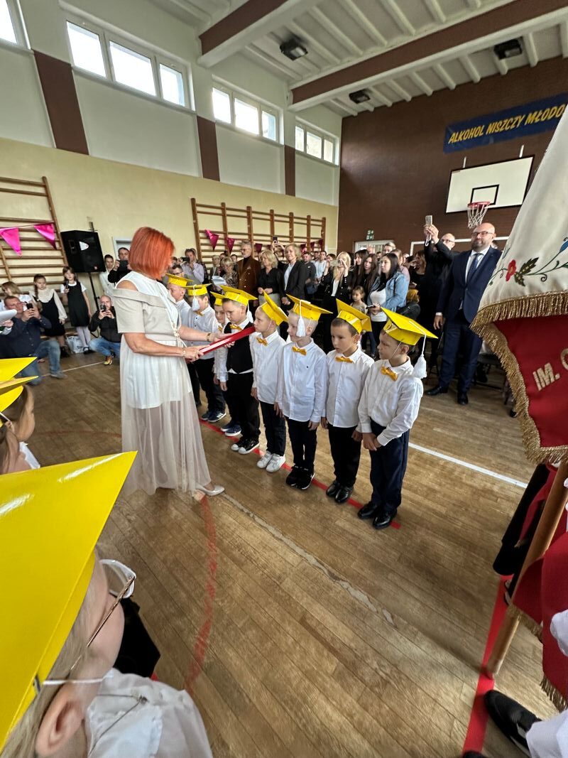 Na zakończenie wszyscy uczniowie otrzymali pamiątkowe dyplomy i legitymacje szkolne. Nie zabrakło też upominków od zaproszonych gości i słodkości od rodziców. Ten dzień miał niezwykle wyjątkowy wymiar, ponieważ pierwsze dni nauki pierwszoklasistów w szkole, zbiegły się z obchodami Jubileuszu 60 – lecia szkoły.