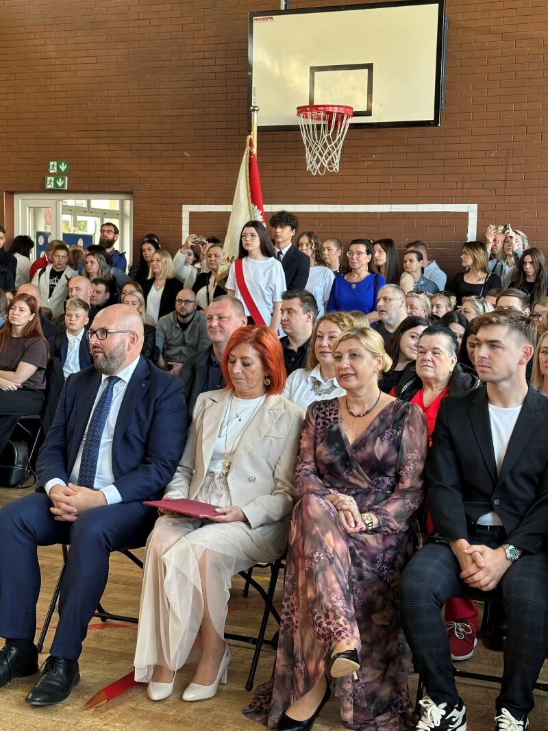 Na ceremonię przybyli zaproszeni goście: Zastępca Prezydenta Miasta Pan Arkadiusz Kraszkiewicz, radna Rady Miasta w Wejherowie Pani Justyna Ostrowska, przewodnicząca Rady Rodziców, radna Rady Miasta Pani Lilianna Breen, Zastępca Przewodniczącej Rady Rodziców pan Konrad Jankowski, Dyrekcja szkoły, nauczyciele oraz Rodzice pierwszoklasistów.