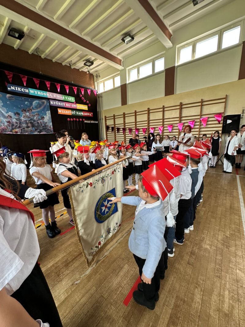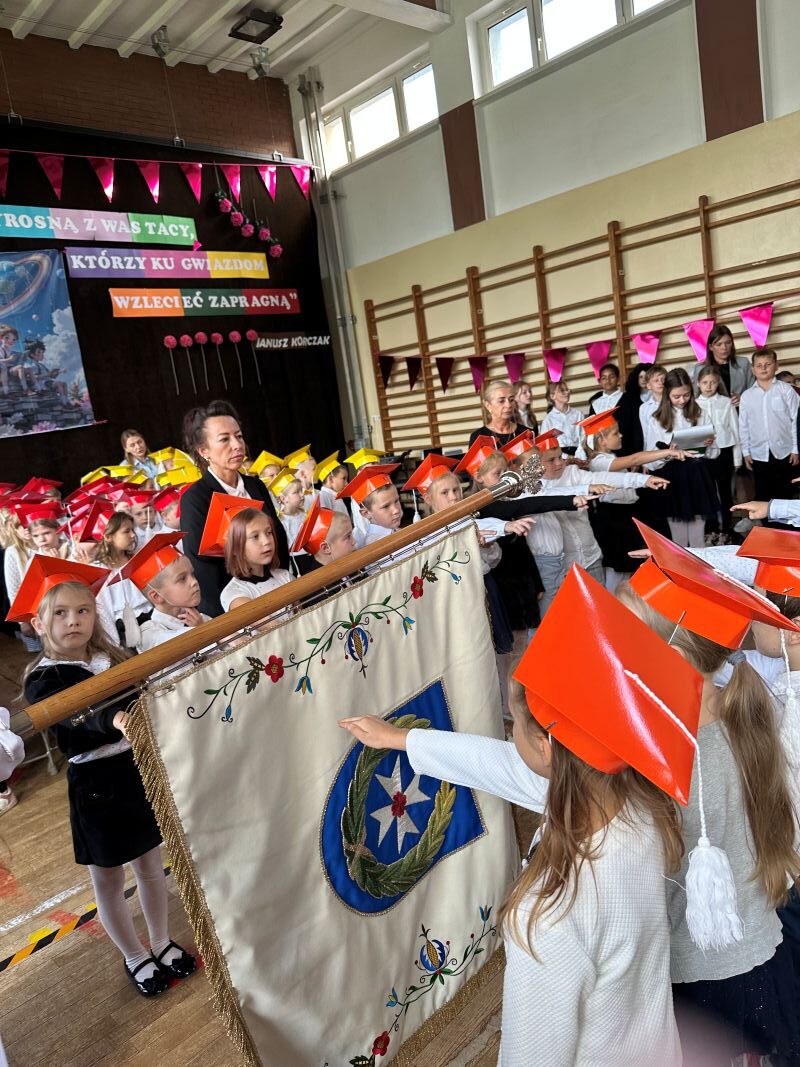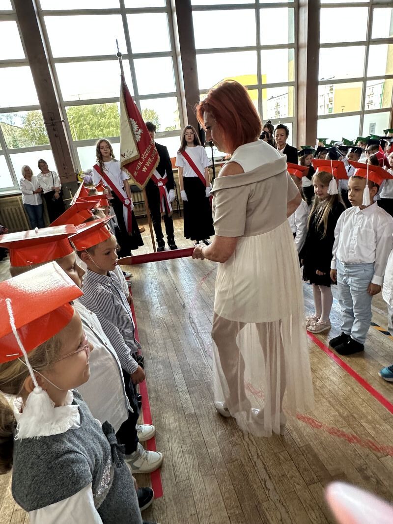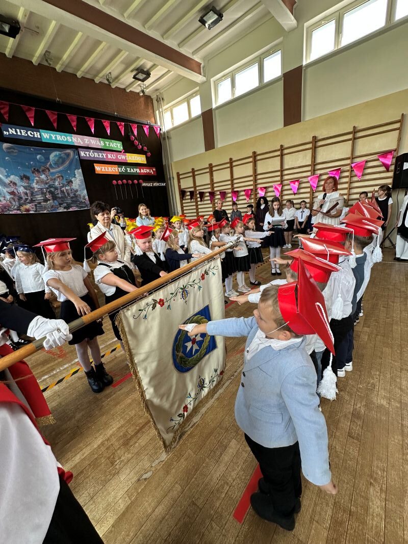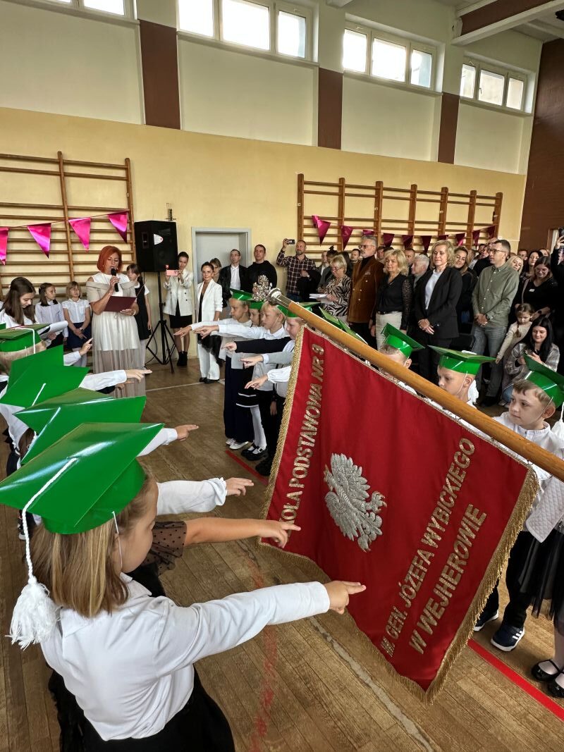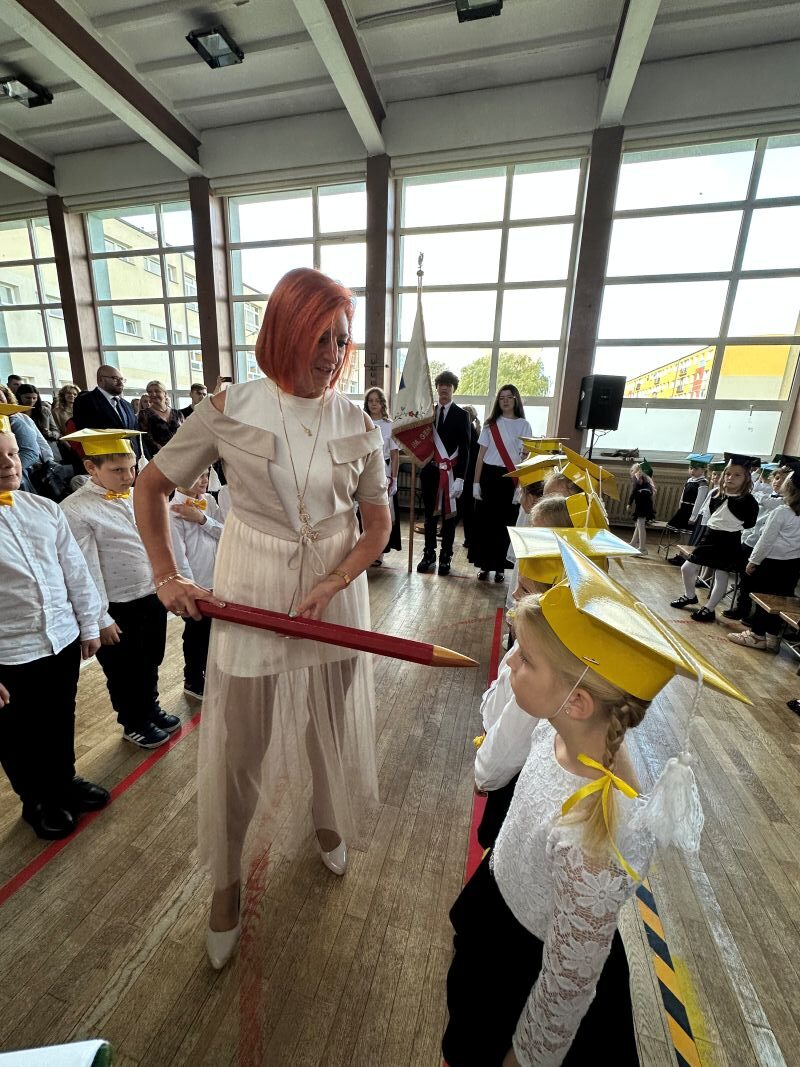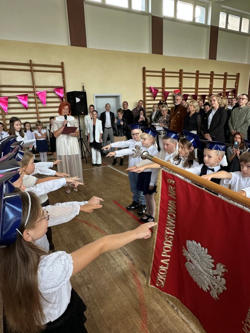 Najważniejszym momentem uroczystości było złożenie przez dzieci uroczystego ślubowania na sztandar szkoły oraz pasowanie na uczniów, którego dokonała pani Dyrektor Olga Tomaszewska. W ten sposób pierwszoklasiści zostali oficjalnie włączeni do grona uczniów Szkoły Podstawowej nr 9 im. gen. Józefa Wybickiego w Wejherowie.