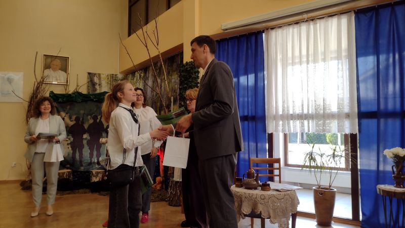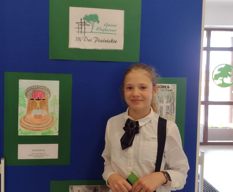 Tego dnia rozstrzygnięto również konkurs plastyczny Olimpiady Wiedzy o Piaśnicy „Piaśnica – Miejsce Martyrologii”, w którym uczennica naszej szkoły, Arina Zruinovana (kl. 6c), otrzymała wyróżnienie.